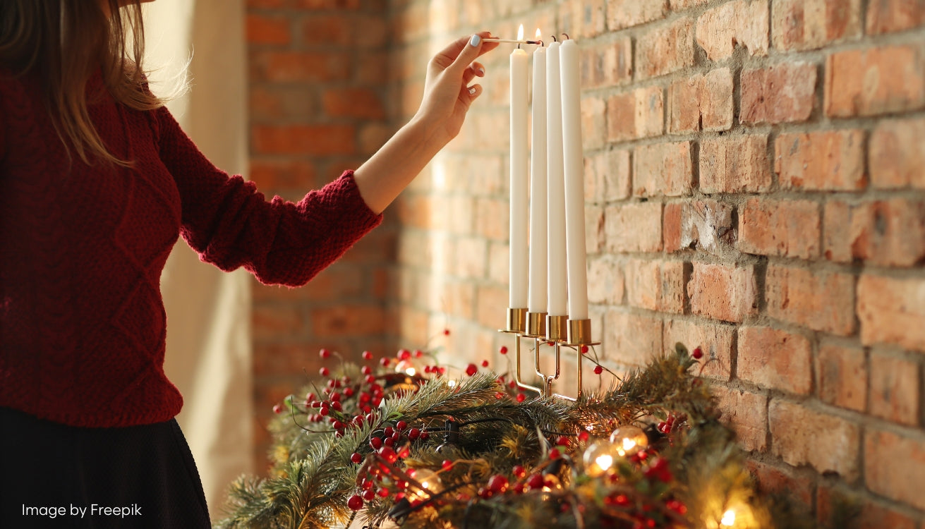 Use pipe hooks to hang cozy blankets or decorative wreaths for a functional and festive display.