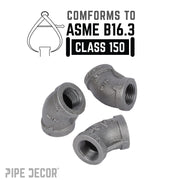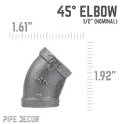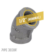 Go in a different direction with 45-degree elbows. They’re perfect for building pipe furniture with unique shapes. Create a one-of-a-kind shelf, lamp, or a piece of art that perfectly fits your space. Our fittings are made with durable, industrial-grade malleable iron. Fittings are 100% authentic and are made to stand the test of time. You will know PIPE DECOR parts and accessories when you hold them. Beauty and beast. Strength and style. These are real industrial fittings for your decorations and designs. Accept no substitutes. Extra pieces and accessories are available for your custom projects and expansions. Plug and play as desired.