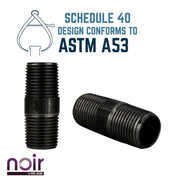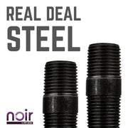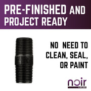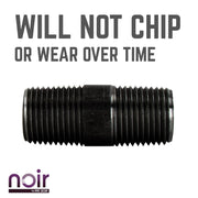 Take your industrial style to the next level with Noir by PIPE DECOR. These prefinished matte black steel nipples truly stand out from the crowd. Noir lends a sophisticated vibe to any PIPE DECOR piece. Build true black pipe legs using our pipes and fittings or create a black clothing rack for your home or retail space. Noir also looks great with brass or galvanized accents. Combine any of our pipe finishes for a one-of-a-kind project that’s unique to you. The beauty of Noir goes below the surface. Unlike electroplated or painted items, our finishing process causes the matte black color to permeate each pipe for a deep tone that will last a lifetime. That means you never have to worry about chips or scratches. While our standard black pipes and fittings are coated in a protective oil during transit, our Noir line comes completely ready to use—no need to clean and seal. It’s laid-back and low maintenance for the DIYer on the go. Take your industrial style to the next level with Noir by PIPE DECOR. These prefinished matte black steel nipples truly stand out from the crowd. Noir lends a sophisticated vibe to any PIPE DECOR piece. Build true black pipe legs using our pipes and fittings or create a black clothing rack for your home or retail space. Noir also looks great with brass or galvanized accents. Combine any of our pipe finishes for a one-of-a-kind project that’s unique to you. The beauty of Noir goes below the surface. Unlike electroplated or painted items, our finishing process causes the matte black color to permeate each pipe for a deep tone that will last a lifetime. That means you never have to worry about chips or scratches. While our standard black pipes and fittings are coated in a protective oil during transit, our Noir line comes completely ready to use—no need to clean and seal. It’s laid-back and low maintenance for the DIYer on the go.