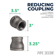 These cylindrical fittings are used to connect two pipes of different diameters. You can use a reducing coupling to add height or length to table legs, bar stool legs, clothing racks, and more by attaching two pipes together. Our fittings are made with durable, industrial-grade malleable iron. Fittings are 100% authentic and are made to stand the test of time. You will know PIPE DECOR parts and accessories when you hold them. Beauty and beast. Strength and style. These are real industrial fittings for your decorations and designs. Accept no substitutes. Extra pieces and accessories are available for your custom projects and expansions. Plug and play as desired.