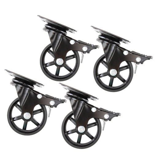 Swivel Caster Wheels for 1” Pipe with Locking Mechanism (4-Pack)