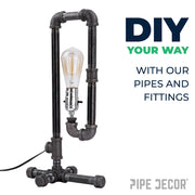Go in a different direction with 90-degree elbows. They’re perfect for building pipe furniture with unique shapes. Create a one-of-a-kind shelf, lamp, or a piece of art that perfectly fits your space. Our fittings are made with durable, industrial-grade malleable iron. Fittings are 100% authentic and are made to stand the test of time. You will know PIPE DECOR parts and accessories when you hold them. Beauty and beast. Strength and style. These are real industrial fittings for your decorations and designs. Accept no substitutes. Extra pieces and accessories are available for your custom projects and expansions. Plug and play as desired.