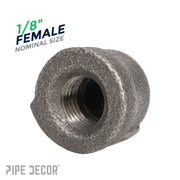 Cap it in style. Add a finished look to any pipe that’s not connected to another pipe or fitting. Use our caps as hook ends or feet for your side table. Create custom pipe fixtures and furnishings that will make a statement. Our fittings are made with durable, industrial-grade malleable iron. Fittings are 100% authentic and are made to stand the test of time. You will know PIPE DECOR parts and accessories when you hold them. Beauty and beast. Strength and style. These are real industrial fittings for your decorations and designs. Accept no substitutes. Extra pieces and accessories are available for your custom projects and expansions. Plug and play as desired.