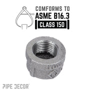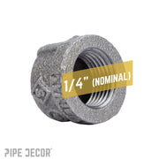 Cap it in style. Add a finished look to any pipe that’s not connected to another pipe or fitting. Use our caps as hook ends or feet for your side table. Create custom pipe fixtures and furnishings that will make a statement. Our fittings are made with durable, industrial-grade malleable iron. Fittings are 100% authentic and are made to stand the test of time. You will know PIPE DECOR parts and accessories when you hold them. Beauty and beast. Strength and style. These are real industrial fittings for your decorations and designs. Accept no substitutes. Extra pieces and accessories are available for your custom projects and expansions. Plug and play as desired.