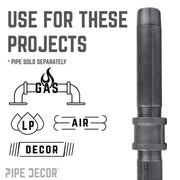 Add height or length to table legs, bar stools, clothing racks, and more by attaching two pipes of different lengths together. Our fittings are made with durable, industrial-grade malleable iron. Fittings are 100% authentic and are made to stand the test of time You will know PIPE DECOR parts and accessories when you hold them. Beauty and beast. Strength and style. These are real industrial fittings for your decorations and designs. Accept no substitutes. Extra pieces and accessories are available for your custom projects and expansions. Plug and play as desired.