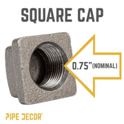 PIPE DECOR has created a one of a kind square cap design to give your industrial creations a distinct look. This patented design is exclusive to PIPE DECOR. Build industrial pipe shelving and table legs that no one else has. Complement your square tabletop or rectangular wooden shelving board with caps that are the same shape.
