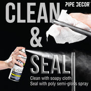 CLEANING AND SEALING: Since these are unfinished cast iron components, industrial grease applied to each fitting and pipe in production to prevent rusting. remove the grease can with a cloth and any household cleaner. Seal the pipe any polyurethane spray to protect it from rust and scratches.
