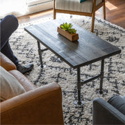 Natural variations and a unique distressed finish from solid end-grain wood, in conjunction with high quality grey industrial-grade malleable iron fittings and steel pipe, makes our RESTORE wood collection feel and look refined, industrial, and rustic all in one. Each piece of handcrafted wood tells a story of an ethically sourced product carefully obtained in North America through responsible forestry efforts that employ low impact logging methods. RESTORE by PIPE DECOR takes pride in providing distinctive, one-of-a-kind pieces that showcase both sophistication and sustainability, providing a product that seamlessly fits into your home. The wire-brushed texture and hand-stained technique offers the appearance of an artfully weathered product that brings out the wood's natural beauty. Natural variations, such as knotting, grain, and color make every piece of wood unique. Our finishing process enhances these existing characteristics - each unique knot becomes a beautiful accent, while the natural wood grain offers organic movement. Pillowed edges accentuate the final version of this artisanal coffee table.