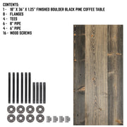 - Each coffee table kit contains one 18 in. x 36 in. x 1.25 in. reclaimed wood tabletop with pillowed edges and one set of "H" pipe legs