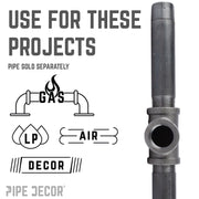 Create a one-of-a-kind shelf, table, lamp, or a piece of art that perfectly fits your space. This T-shaped fitting has three places to connect pipes, providing strength and stability to desks, tables, or any of your DIY creations. Our fittings are made with durable, industrial-grade malleable iron. Fittings are 100% authentic and are made to stand the test of time. You will know PIPE DECOR parts and accessories when you hold them. Beauty and beast. Strength and style. These are real industrial fittings for your decorations and designs. Accept no substitutes. Extra pieces and accessories are available for your custom projects and expansions. Plug and play as desired.