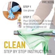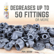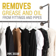 Turn your pipe furniture into home furniture with PIPE DECOR’s degreaser. Our cleaning solution will help you take dirty industrial pipes to the next level. Whether you purchase a PIPE DECOR furniture kit or order loose pipes and fittings from another retailer, real steel pipes are coated with a light oil to prevent rusting while in transit. With our convenient degreaser, you can make sure that the pipes are oil-free before you start painting or building. At PIPE DECOR, we know our pipes. Our degreaser has been specifically tailored for use with schedule 40 steel pipes and iron fittings, either for DIY purposes or real plumbing applications.