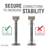 Say goodbye to over-tightening and hello to a secure and stable connection. Introducing Threadlocker, the ultimate solution for locking threaded pipes and fittings into place. This product is designed to provide long-term stability to your pipe furniture. Threadlocker’s flexibility allows for easy adjustments after application to fit with your design. Initial dry time is one hour, so Threadlocker gives you ample time to adjust the pipes and fittings into the ideal position so you can achieve your desired alignment or to make sure that your table legs are perfectly level. After that, the product cures completely in 24 hours. Threadlocker is the perfect solution for locking your pipes in place. Our no-mess gel formula is easy to apply, ensuring a clean and hassle-free experience. The vibrant blue color stands out so you can make sure it’s applied where you need it and nowhere else. Safety first! Please wear gloves when applying Threadlocker and wash hands thoroughly after use. It’s best to be in a well-ventilated area when using this product.