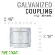 Need a special pipe size? Add a galvanized coupling to join any two pipe lengths together to build the size you need. Add height or length to table legs, bar stools, clothing racks, and more by attaching two pipes of different lengths together. Galvanized fittings are silver in color with a shiny finish that brings a clean, polished look to your pipe furniture. Our fittings are made with durable, industrial-grade malleable iron. Fittings are 100% authentic and are made to stand the test of time. You will know PIPE DECOR parts and accessories when you hold them. Beauty and beast. Strength and style. These are real industrial fittings for your decorations and designs. Accept no substitutes. Extra pieces and accessories are available for your custom projects and expansions. Plug and play as desired.