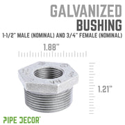 Make your standard fittings more versatile with our galvanized bushings. A bushing can be used in any project that involves connecting a larger fitting with a smaller pipe. Make the most of your DIY creations. Galvanized fittings are silver in color with a shiny finish that brings a clean, polished look to your pipe furniture. Our fittings are made with durable, industrial-grade malleable iron. Fittings are 100% authentic and are made to stand the test of time. You will know PIPE DECOR parts and accessories when you hold them. Beauty and beast. Strength and style. These are real industrial fittings for your decorations and designs. Accept no substitutes. Extra pieces and accessories are available for your custom projects and expansions. Plug and play as desired.