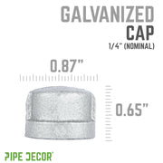 Cap it in style. Add a finished look to any pipe that’s not connected to another pipe or fitting. Use our galvanized caps as hook ends or feet for your side table. Create custom pipe fixtures and furnishings that will make a statement. Galvanized fittings are silver in color with a shiny finish that brings a clean, polished look to your pipe furniture. Our fittings are made with durable, industrial-grade malleable iron. Fittings are 100% authentic and are made to stand the test of time. You will know PIPE DECOR parts and accessories when you hold them. Beauty and beast. Strength and style. These are real industrial fittings for your decorations and designs. Accept no substitutes. Extra pieces and accessories are available for your custom projects and expansions. Plug and play as desired.