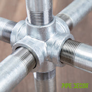 Our galvanized fittings are silver in color with a shiny finish that brings a clean, polished look to your pipe furniture. Use a 6-way fitting as the center of a pipe light fixture or for other creative projects. The sky’s the limit!