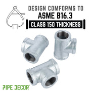 Create a one-of-a-kind shelf, table, lamp, or a piece of art that perfectly fits your space. This T-shaped fitting has three places to connect pipes, providing strength and stability to desks, tables, or any of your DIY creations. Galvanized fittings are silver in color with a shiny finish that brings a clean, polished look to your pipe furniture. Our fittings are made with durable, industrial-grade malleable iron. Fittings are 100% authentic and are made to stand the test of time. You will know PIPE DECOR parts and accessories when you hold them. Beauty and beast. Strength and style. These are real industrial fittings for your decorations and designs. Accept no substitutes. Extra pieces and accessories are available for your custom projects and expansions. Plug and play as desired.