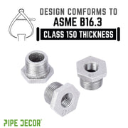 Make your standard fittings more versatile with our galvanized bushings. A bushing can be used in any project that involves connecting a larger fitting with a smaller pipe. Make the most of your DIY creations. Galvanized fittings are silver in color with a shiny finish that brings a clean, polished look to your pipe furniture. Our fittings are made with durable, industrial-grade malleable iron. Fittings are 100% authentic and are made to stand the test of time. You will know PIPE DECOR parts and accessories when you hold them. Beauty and beast. Strength and style. These are real industrial fittings for your decorations and designs. Accept no substitutes. Extra pieces and accessories are available for your custom projects and expansions. Plug and play as desired.
