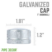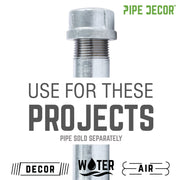 Cap it in style. Add a finished look to any pipe that’s not connected to another pipe or fitting. Use our galvanized caps as hook ends or feet for your side table. Create custom pipe fixtures and furnishings that will make a statement. Galvanized fittings are silver in color with a shiny finish that brings a clean, polished look to your pipe furniture. Our fittings are made with durable, industrial-grade malleable iron. Fittings are 100% authentic and are made to stand the test of time. You will know PIPE DECOR parts and accessories when you hold them. Beauty and beast. Strength and style. These are real industrial fittings for your decorations and designs. Accept no substitutes. Extra pieces and accessories are available for your custom projects and expansions. Plug and play as desired.