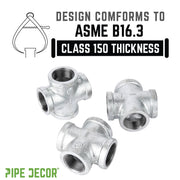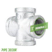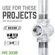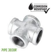 Let your DIY dreams run wild with galvanized cross fittings. They are the perfect piece for any type of table, desk, or fixture. This four-way fitting allows you to connect four pipes, each at a 90-degree angle from the next. Galvanized fittings are silver in color with a shiny finish that brings a clean, polished look to your pipe furniture. Our fittings are made with durable, industrial-grade malleable iron. Fittings are 100% authentic and are made to stand the test of time. You will know PIPE DECOR parts and accessories when you hold them. Beauty and beast. Strength and style. These are real industrial fittings for your decorations and designs. Accept no substitutes. Extra pieces and accessories are available for your custom projects and expansions. Plug and play as desired.