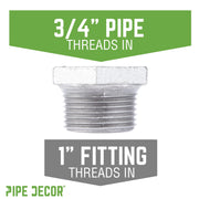 Make your standard fittings more versatile with our galvanized bushings. A bushing can be used in any project that involves connecting a larger fitting with a smaller pipe. Make the most of your DIY creations. Galvanized fittings are silver in color with a shiny finish that brings a clean, polished look to your pipe furniture. Our fittings are made with durable, industrial-grade malleable iron. Fittings are 100% authentic and are made to stand the test of time. You will know PIPE DECOR parts and accessories when you hold them. Beauty and beast. Strength and style. These are real industrial fittings for your decorations and designs. Accept no substitutes. Extra pieces and accessories are available for your custom projects and expansions. Plug and play as desired.