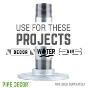The flange is the true workhorse of PIPE DECOR. These galvanized flanges work as shelf brackets, feet for table legs, and more. They will give you the support your project needs. Galvanized fittings are silver in color with a shiny finish that brings a clean, polished look to your pipe furniture. Our fittings are made with durable, industrial-grade malleable iron. Fittings are 100% authentic and are made to stand the test of time. You will know PIPE DECOR parts and accessories when you hold them. Beauty and beast. Strength and style. These are real industrial fittings for your decorations and designs. Accept no substitutes. Extra pieces and accessories are available for your custom projects and expansions. Plug and play as desired.