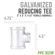 Reducing tees give you the flexibility to build the project of your dreams. You can use a galvanized reducing tee in almost any project that you would normally use a regular tee for, as long as the smaller pipe size can support the right amount of weight for your project. Using two different pipe sizes can make for a unique visual effect. Galvanized fittings are silver in color with a shiny finish that brings a clean, polished look to your pipe furniture. Our fittings are made with durable, industrial-grade malleable iron. Fittings are 100% authentic and are made to stand the test of time. You will know PIPE DECOR parts and accessories when you hold them. Beauty and beast. Strength and style. These are real industrial fittings for your decorations and designs. Accept no substitutes. Extra pieces and accessories are available for your custom projects and expansions. Plug and play as desired.
