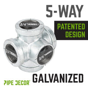 Our galvanized fittings are silver in color with a shiny finish that brings a clean, polished look to your pipe furniture. Use a 5-way fitting as the center of a pipe light fixture or for other creative projects. The sky’s the limit!