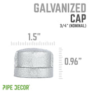 Cap it in style. Add a finished look to any pipe that’s not connected to another pipe or fitting. Use our galvanized caps as hook ends or feet for your side table. Create custom pipe fixtures and furnishings that will make a statement. Galvanized fittings are silver in color with a shiny finish that brings a clean, polished look to your pipe furniture. Our fittings are made with durable, industrial-grade malleable iron. Fittings are 100% authentic and are made to stand the test of time. You will know PIPE DECOR parts and accessories when you hold them. Beauty and beast. Strength and style. These are real industrial fittings for your decorations and designs. Accept no substitutes. Extra pieces and accessories are available for your custom projects and expansions. Plug and play as desired.