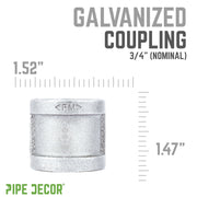 Need a special pipe size? Add a galvanized coupling to join any two pipe lengths together to build the size you need. Add height or length to table legs, bar stools, clothing racks, and more by attaching two pipes of different lengths together. Galvanized fittings are silver in color with a shiny finish that brings a clean, polished look to your pipe furniture. Our fittings are made with durable, industrial-grade malleable iron. Fittings are 100% authentic and are made to stand the test of time. You will know PIPE DECOR parts and accessories when you hold them. Beauty and beast. Strength and style. These are real industrial fittings for your decorations and designs. Accept no substitutes. Extra pieces and accessories are available for your custom projects and expansions. Plug and play as desired.