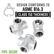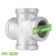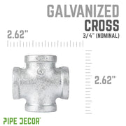 Let your DIY dreams run wild with galvanized cross fittings. They are the perfect piece for any type of table, desk, or fixture. This four-way fitting allows you to connect four pipes, each at a 90-degree angle from the next. Galvanized fittings are silver in color with a shiny finish that brings a clean, polished look to your pipe furniture. Our fittings are made with durable, industrial-grade malleable iron. Fittings are 100% authentic and are made to stand the test of time. You will know PIPE DECOR parts and accessories when you hold them. Beauty and beast. Strength and style. These are real industrial fittings for your decorations and designs. Accept no substitutes. Extra pieces and accessories are available for your custom projects and expansions. Plug and play as desired.