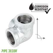 These are genuine galvanized pipe fittings that will stand the test of time. Galvanized malleable iron fittings are hot dipped in zinc, making them more resistant to corrosion. Our galvanized fittings are silver in color with a shiny finish that brings a clean, polished look to your pipe furniture. Galvanized pipes and fittings are prefinished, so you don’t have to clean or seal them before use.