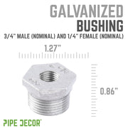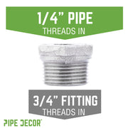 Make your standard fittings more versatile with our galvanized bushings. A bushing can be used in any project that involves connecting a larger fitting with a smaller pipe. Make the most of your DIY creations. Galvanized fittings are silver in color with a shiny finish that brings a clean, polished look to your pipe furniture. Our fittings are made with durable, industrial-grade malleable iron. Fittings are 100% authentic and are made to stand the test of time. You will know PIPE DECOR parts and accessories when you hold them. Beauty and beast. Strength and style. These are real industrial fittings for your decorations and designs. Accept no substitutes. Extra pieces and accessories are available for your custom projects and expansions. Plug and play as desired.