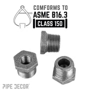 Make your standard fittings more versatile with our black bushings. A bushing can be used in any project that involves connecting a larger fitting with a smaller pipe. Make the most out of your DIY creations. Our fittings are made with durable, industrial-grade malleable iron. Fittings are 100% authentic and are made to stand the test of time. You will know PIPE DECOR parts and accessories when you hold them. Beauty and beast. Strength and style. These are real industrial fittings for your decorations and designs. Accept no substitutes. Extra pieces and accessories are available for your custom projects and expansions. Plug and play as desired.