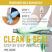 Make your DIY creations last longer with PIPE DECOR’s specialty sealer. Before assembling your pipe furniture, use our sealer to protect your pipes from rust, dust buildup, and corrosion. Fight wear and tear by using our sealer on any pipe.