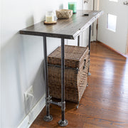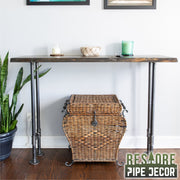 - Each console table kit contains one 48 in. x 16 in. x 1.25 in. wood tabletop, featuring 3 pillowed edges and one live, organic edge, plus one set of "H" pipe legs