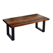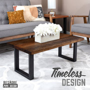 Our wood coffee table with square metal legs has a modern vibe that adds style to any room. This coffee table is the ideal centerpiece for the experiences that make your house a home. Whether you’re entertaining guests or having your book club over for tea, this piece is meant to be enjoyed with a healthy dose of love and laughter. Make clean up a snap with durable materials and finishes. Simply wipe the tabletop and legs with a dry or damp cloth to whisk away dust and spills. Furniture can be both sophisticated and sustainable. We have taken extra care in assembling this set and want you to know that you are getting a high-quality product made with real industrial steel and genuine North American lumber. All of our tabletops are kiln-dried. Kiln-dried wood helps prevent warping, splitting, cracking, and mildew. The wood is then hand-finished using our exclusive multi-step process to create an exceptional depth of color in the resulting stain.