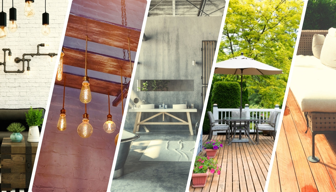 Añade iluminación industrial: Instala lámparas industriales para crear un ambiente acogedor y atractivo para las largas tardes de verano. Las bombillas Edison en lámparas de tubo aportan una luz cálida y ambiental, perfecta para cenar o relajarse al aire libre.