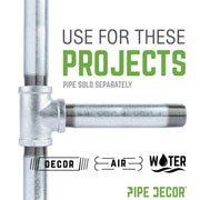 - Compatible con cualquier tubería, accesorio y kits de muebles PIPE DECOR del mismo diámetro.