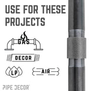 Los acoplamientos comerciales se mecanizan a partir de acero laminado. Son los únicos accesorios que vendemos fabricados con el mismo acero industrial que nuestras tuberías. Se fabrican con las mismas especificaciones que el resto de nuestros accesorios, pero con la ventaja adicional del acero. Probados hidrostáticamente, estos acoplamientos comerciales son ideales para aplicaciones de decoración y plomería con aire, gas y propano líquido. Cada acoplamiento une dos tuberías del mismo diámetro para una extensión resistente y robusta. Reconocerá las piezas y accesorios de PIPE DECOR al tocarlos. Belleza y bestia. Resistencia y estilo. Son auténticos accesorios industriales para sus decoraciones y diseños. No acepte sustitutos. Disponemos de piezas y accesorios adicionales para sus proyectos y ampliaciones personalizados. Conéctelos y úselos como desee.