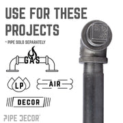 - Compatible con cualquier tubería, accesorio y kits de muebles PIPE DECOR del mismo diámetro.
