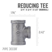 Tee reductora negra de 3/4 pulg. x 3/4 pulg. x 1/2 pulg.