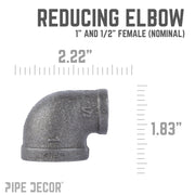¿Tiene problemas para conectar dos tuberías de diferentes diámetros? Necesita un codo reductor. Incorpore esa tubería más grande o más pequeña en su próximo proyecto. Cree un efecto visual único usando dos tamaños de tubería diferentes en sus proyectos de bricolaje. Nuestros accesorios están fabricados con hierro maleable duradero de grado industrial. Son 100 % auténticos y están diseñados para resistir el paso del tiempo. Reconocerá las piezas y accesorios de PIPE DECOR al tocarlos. Belleza y bestia. Resistencia y estilo. Son auténticos accesorios industriales para sus decoraciones y diseños. No acepte sustitutos. Disponemos de piezas y accesorios adicionales para sus proyectos y ampliaciones personalizados. Conéctelos y úselos como desee.