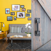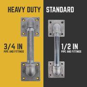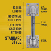 La manija de puerta de granero: reinventada. Le hemos dado a nuestra manija un nuevo diseño elegante y vanguardista que se adapta al estilo evolutivo de la decoración industrial de granja. Las curvas redondeadas tradicionales se sustituyen por tes rectas, tapones cuadrados y nuestra brida cuadrada patentada para darle a su decoración un aspecto único. Una combinación perfecta de funcionalidad y estilo, estos tiradores de puerta de granero de estilo industrial de granja son el toque final para sus puertas de granero rústicas. Se trata de accesorios de tubería industrial genuinos, no de imitaciones de manijas de puerta de granero. Este producto resistirá el paso del tiempo. El tubo de 1,27 cm y los accesorios a juego funcionan bien con puertas de tamaño completo y lucen increíbles como tiradores de cajones en muebles más grandes. Las tuberías y accesorios de fontanería auténticos se pueden pintar para combinar con su decoración o sellar con un acabado transparente. Nuestros tubos de acero negro industrial y accesorios de hierro maleable se pueden combinar con cualquier tipo de madera para un proyecto de manija de puerta único que puede completar en un solo fin de semana. Recomendamos usar nuestras manijas para puertas de granero únicamente en puertas de madera maciza. PIPE DÉCOR está diseñado para resistir el paso del tiempo. Modernizamos las tuberías y utilizamos materiales tradicionales de forma innovadora. Cada pieza tiene el tamaño y peso estándar para aplicaciones de tuberías industriales. Nuestras tuberías son duraderas, así que nunca tendrá que preocuparse por que sus manijas dejen de funcionar. No acepte sustitutos baratos disponibles en materiales puramente decorativos. PIPE DÉCOR es la mejor opción.