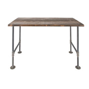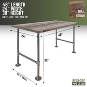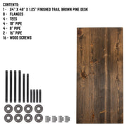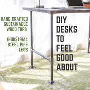 - Cada kit de escritorio contiene un escritorio de madera recuperada de 24 pulgadas x 48 pulgadas x 1,25 pulgadas con bordes acolchados y un juego de patas de tubo en "H".