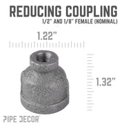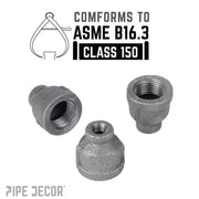 Estos accesorios cilíndricos se utilizan para conectar dos tubos de diferentes diámetros. Puede usar un acoplamiento reductor para aumentar la altura o longitud de las patas de mesas, taburetes de bar, percheros y más, uniendo dos tubos. Nuestros accesorios están fabricados con hierro maleable duradero de grado industrial. Son 100 % auténticos y están diseñados para resistir el paso del tiempo. Reconocerá las piezas y accesorios de PIPE DECOR al tocarlos. Belleza y bestia. Resistencia y estilo. Son auténticos accesorios industriales para sus decoraciones y diseños. No acepte sustitutos. Disponemos de piezas y accesorios adicionales para sus proyectos y ampliaciones personalizados. Conéctelos y úselos como desee.
