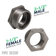 Dale más versatilidad a tus accesorios estándar con nuestros casquillos negros. Un casquillo se puede usar en cualquier proyecto que implique conectar un accesorio más grande con una tubería más pequeña. Aprovecha al máximo tus creaciones DIY. Nuestros accesorios están fabricados con hierro maleable duradero de grado industrial. Son 100 % auténticos y están diseñados para resistir el paso del tiempo. Reconocerá las piezas y accesorios de PIPE DECOR al tocarlos. Belleza y bestia. Resistencia y estilo. Son auténticos accesorios industriales para sus decoraciones y diseños. No acepte sustitutos. Disponemos de piezas y accesorios adicionales para sus proyectos y ampliaciones personalizados. Conéctelos y úselos como desee.