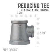 Las tes reductoras te dan la flexibilidad de construir el proyecto de tus sueños. Puedes usar una te reductora en casi cualquier proyecto para el que normalmente usarías una te regular, siempre que el tamaño de tubo más pequeño soporte el peso adecuado. Usar dos tamaños de tubo diferentes puede crear un efecto visual único. Nuestros accesorios están fabricados con hierro maleable duradero de grado industrial. Son 100 % auténticos y están diseñados para resistir el paso del tiempo. Reconocerá las piezas y accesorios de PIPE DECOR al tocarlos. Belleza y bestia. Resistencia y estilo. Son auténticos accesorios industriales para sus decoraciones y diseños. No acepte sustitutos. Disponemos de piezas y accesorios adicionales para sus proyectos y ampliaciones personalizados. Conéctelos y úselos como desee.