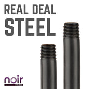 Lleva tu estilo industrial al siguiente nivel con Noir de PIPE DECOR. Estas tuberías de acero negro mate preacabadas realmente destacan entre la multitud. El color Noir le da un toque sofisticado a cualquier pieza de PIPE DECOR. Construye patas de tubería en negro auténtico con nuestros tubos y accesorios o crea un perchero negro para tu hogar o tienda. El color Noir también luce de maravilla con detalles en latón o galvanizado. Combina cualquiera de nuestros acabados de tubería para crear un proyecto único y exclusivo. La belleza de Noir se esconde bajo la superficie. A diferencia de los artículos galvanizados o pintados, nuestro proceso de acabado permite que el color negro mate impregne cada tubo, creando un tono profundo que durará toda la vida. Esto significa que nunca tendrá que preocuparse por astillas ni rayones. Mientras que nuestras tuberías y accesorios negros estándar se recubren con un aceite protector durante el transporte, nuestra línea Noir viene completamente lista para usar, sin necesidad de limpieza ni sellado. Es práctica y de bajo mantenimiento para quienes se dedican al bricolaje y están en constante movimiento.