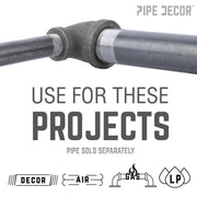 ¿Tiene problemas para conectar dos tuberías de diferentes diámetros? Necesita un codo reductor. Incorpore esa tubería más grande o más pequeña en su próximo proyecto. Cree un efecto visual único usando dos tamaños de tubería diferentes en sus proyectos de bricolaje. Nuestros accesorios están fabricados con hierro maleable duradero de grado industrial. Son 100 % auténticos y están diseñados para resistir el paso del tiempo. Reconocerá las piezas y accesorios de PIPE DECOR al tocarlos. Belleza y bestia. Resistencia y estilo. Son auténticos accesorios industriales para sus decoraciones y diseños. No acepte sustitutos. Disponemos de piezas y accesorios adicionales para sus proyectos y ampliaciones personalizados. Conéctelos y úselos como desee.